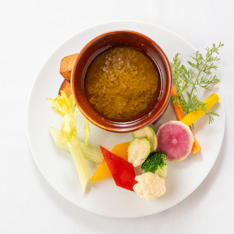 Lobster bisque with sherry | Wine pairing: Prosecco (spumante/2oz) ― ロブスターのうらごしクリームスープシェリー風味 | プロセッコ 辛口 (スパークリング/60ml)