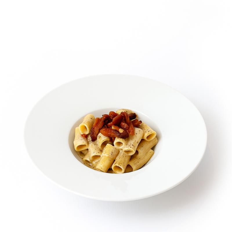 guanciale, onions, spicy garlic tomato sauce, parmesan-グアンチャーレとオニオンのアマトリチャーナ・リガトーニ