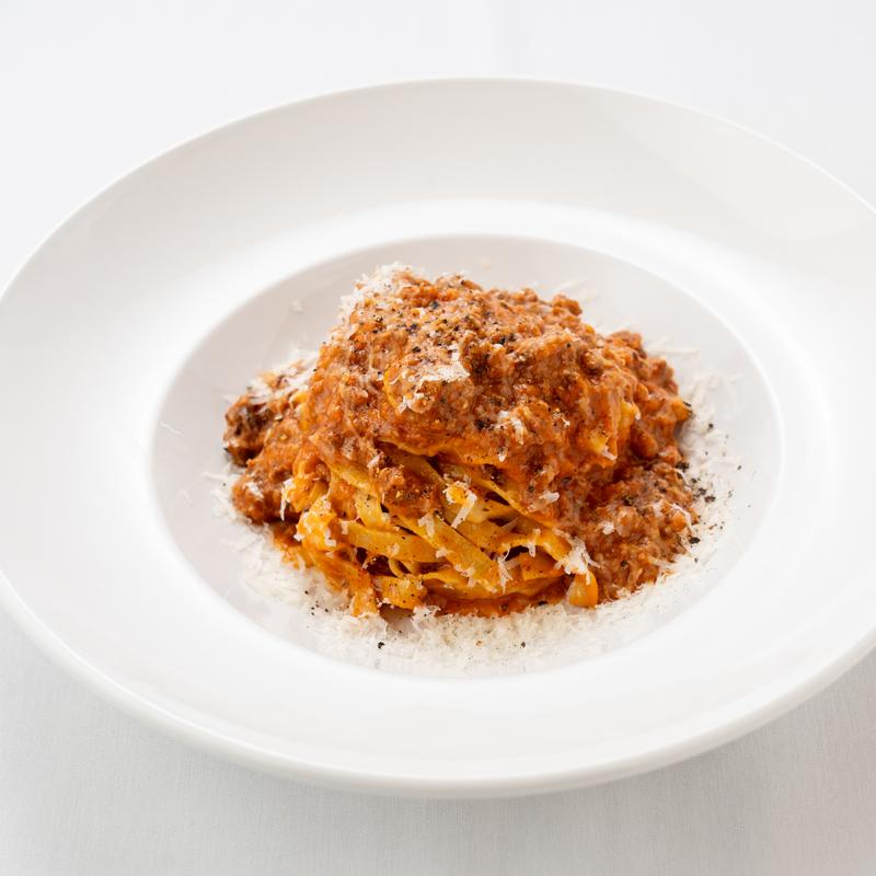 Fresh tagliatelle, classic meat sauce | Wine pairing: Chianti (red/2oz) ― ハワイ島産牛肉の挽肉ミートソース | キアンティ (赤/60ml)