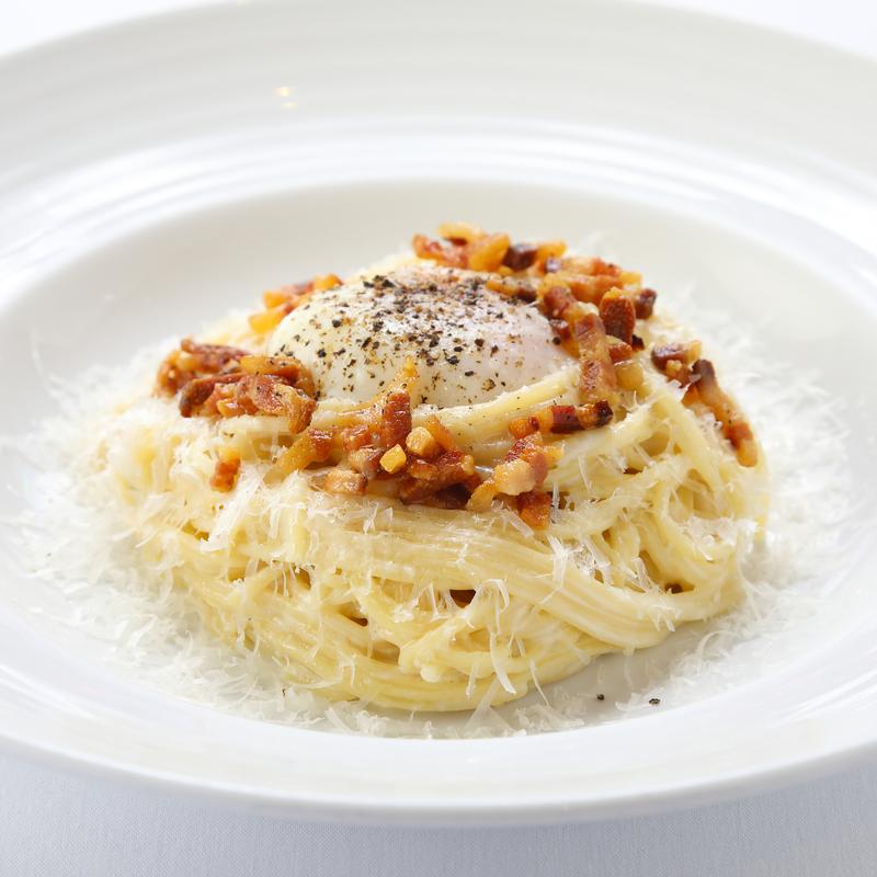 Classic Roma dish: pecorino romano, parmigiano reggiano, toasted black peppercorn prepared tableside in an imported pecorino Romano cheese wheel- ペコリーノチーズと黒こしょうローマ名物パスタ (テーブルサイドで仕上げます)