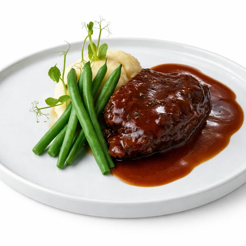braised beef cheeks, mashed potatoes, haricots vert - ほほ肉 赤ワイン煮込み なめらかマッシュポテト